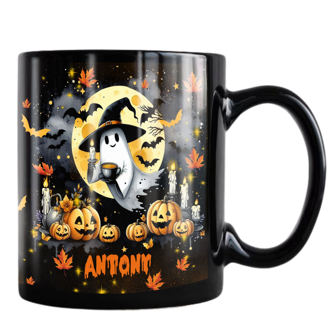 Personalized Boo Halloween Coffee Mug Custom Name Cute Ghost Black Ceramic Cup 11Oz 15Oz Decor Gifts for Kids Friends Women Men Family Spooky Season Holiday