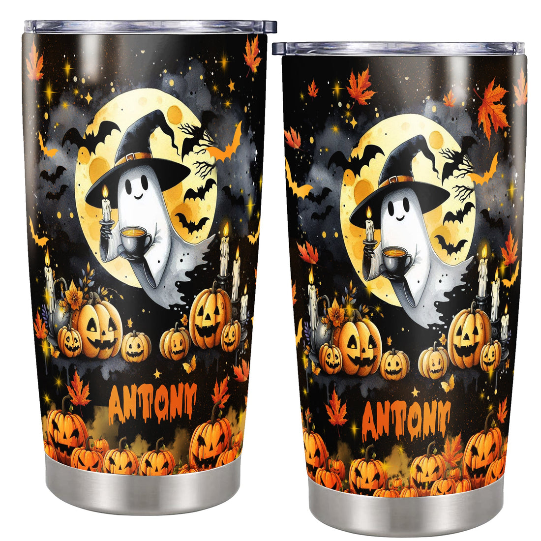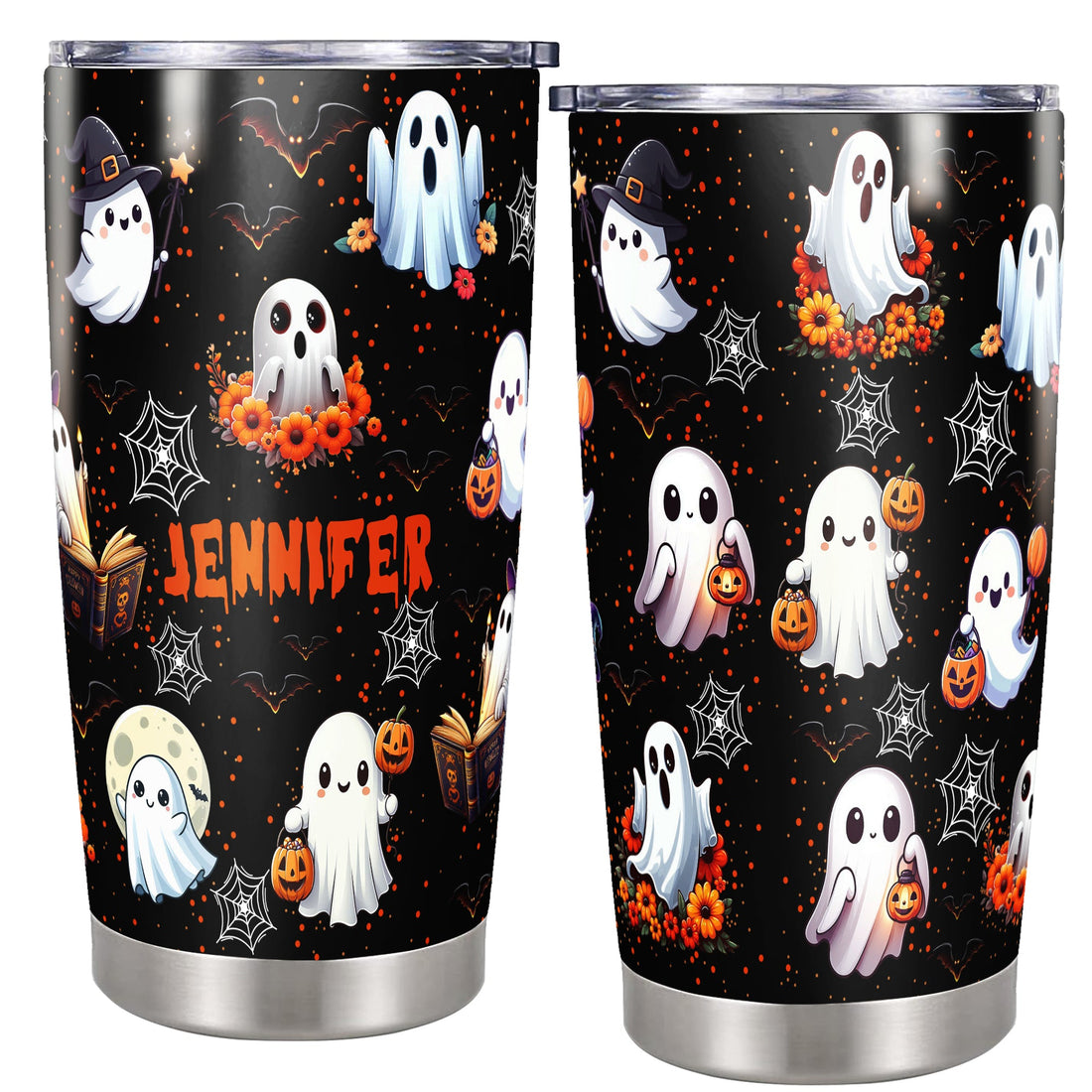 Personalized Ghost Halloween Tumbler Custom Name Insulated Cup with Lid Travel Mug Coffee Stainless Steel 20Oz 30Oz Decor Gifts for Women Men Kids