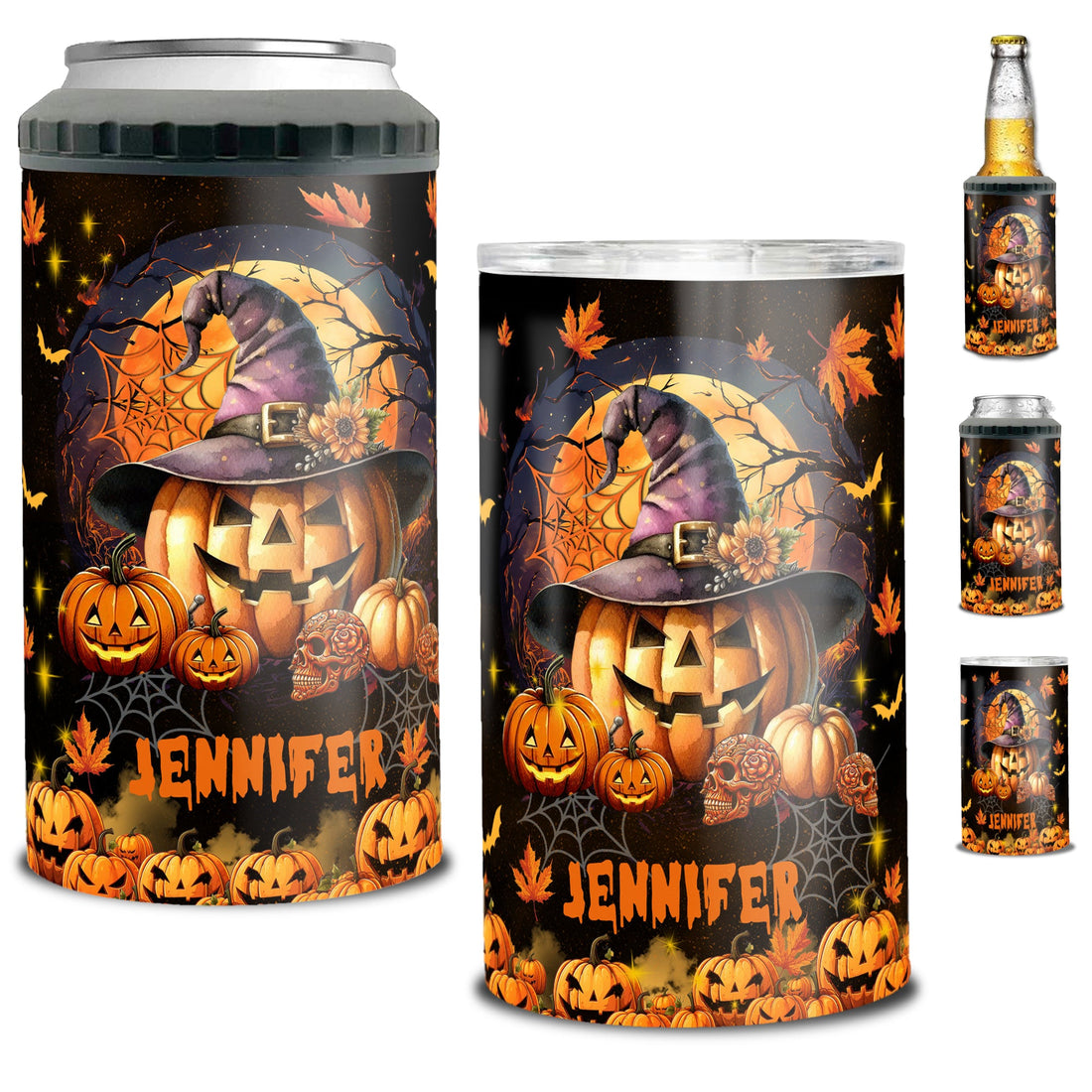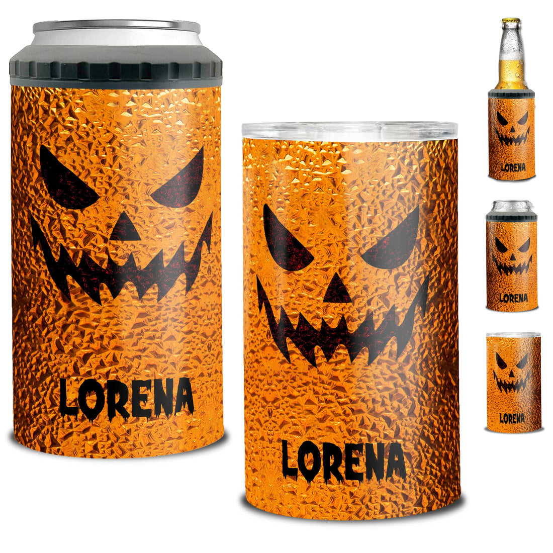 Personalized Halloween Can Cooler 4 in 1 Holder Cup with Lids Customized Name 16oz Beer Drinking Gifts for Pumpkin Lovers Women Men Kids Teen Holiday