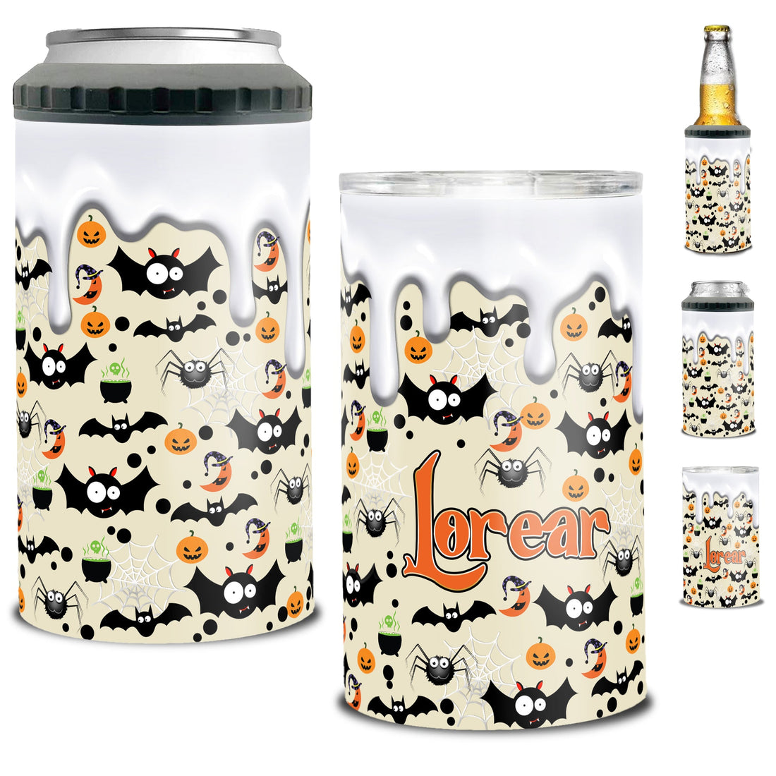 Personalized Halloween Bat Can Cooler 4 in 1 Holder Cup with Lids Customized Name 16oz Beer Drinking Gifts for Bats Lovers Women Men Kids Teen Holiday