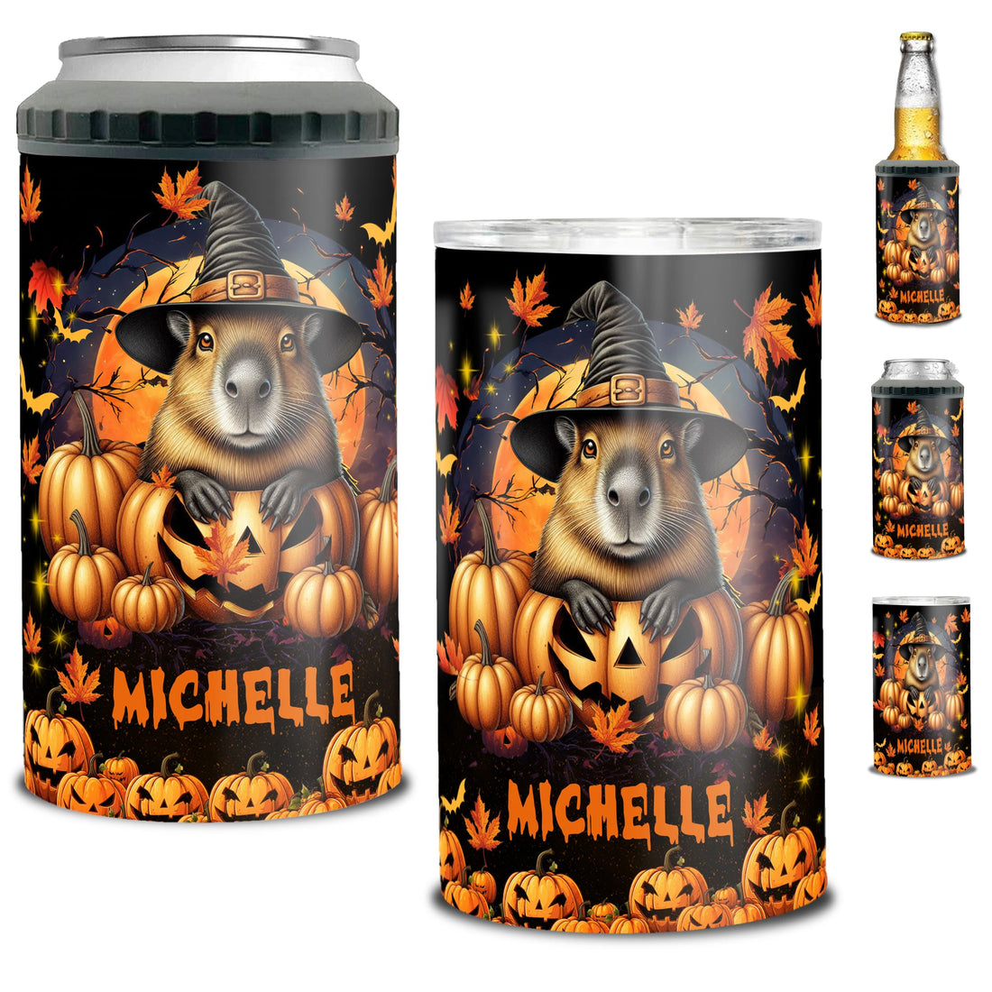 Personalized Capybara Halloween Can Cooler 4 in 1 Holder Cup with Lids Customized Name 16oz Beer Drinking Gifts for Capybaras Lovers Women Men Kids Teen Holiday