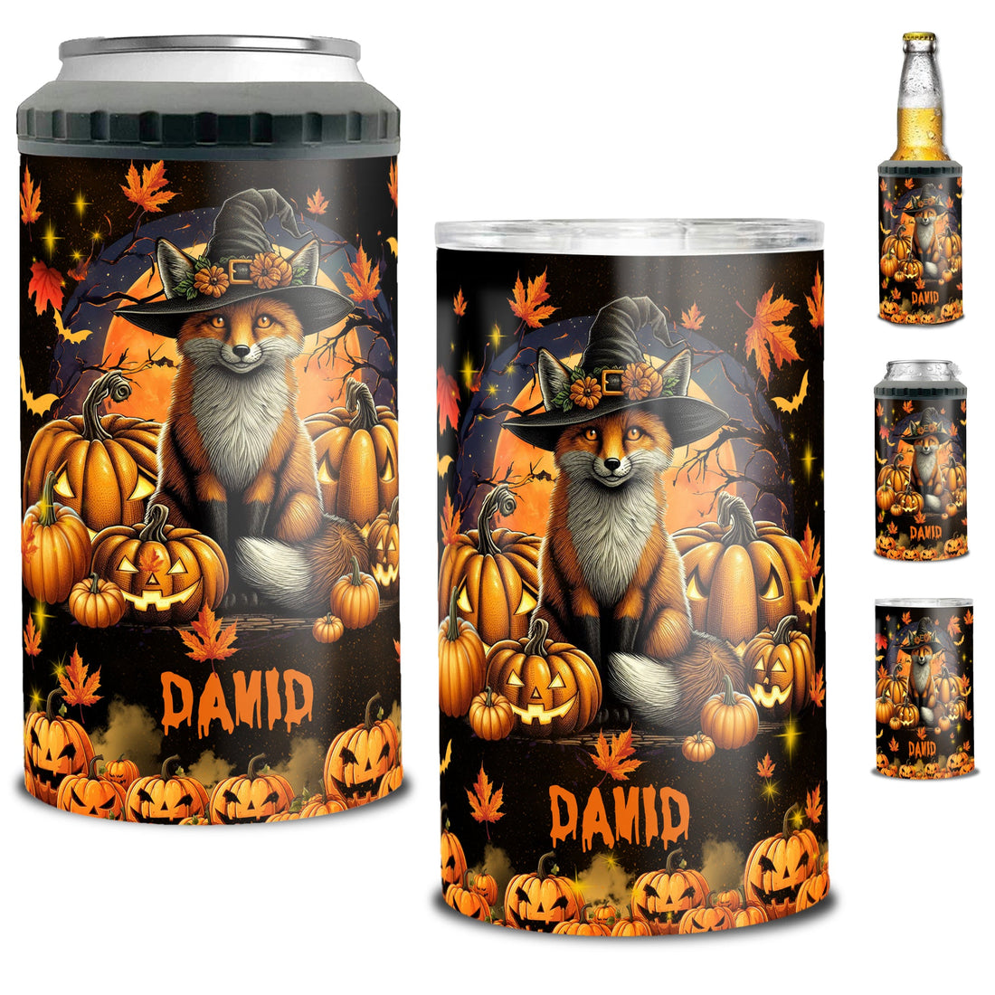 Personalized Fox Halloween Can Cooler 4 in 1 Holder Cup with Lids Customized Name 16oz Beer Drinking Gifts for Women Men Kids Teen Holiday