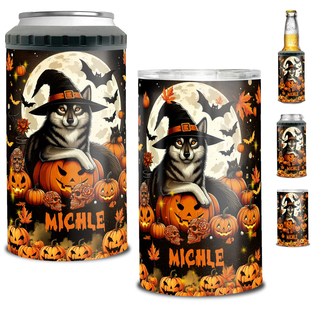 Personalized Wolf Halloween Can Cooler 4 in 1 Holder Cup with Lids Customized Name 16oz Beer Drinking Gifts for Wolfs Lovers Women Men Kids Teen Holiday