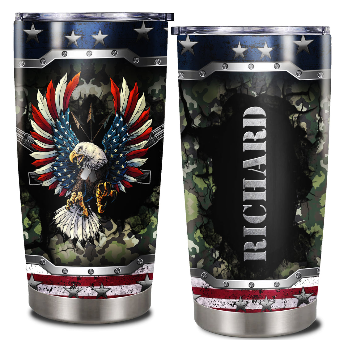 Personalized American Flag Tumbler Eagle Army USA Flag Customized Name Stainless Steel Insulated Cup with Lid 20 30 Oz Gifts for Men Dad Veterans Day