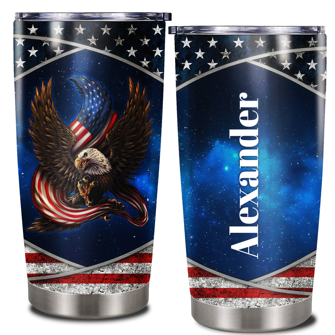 Personalized American Flag Tumbler Eagles America USA Flag Custom Name Tumblers With Lid Stainless Steel Insulated Coffee Travel Cups Gift For Veterans Army Men