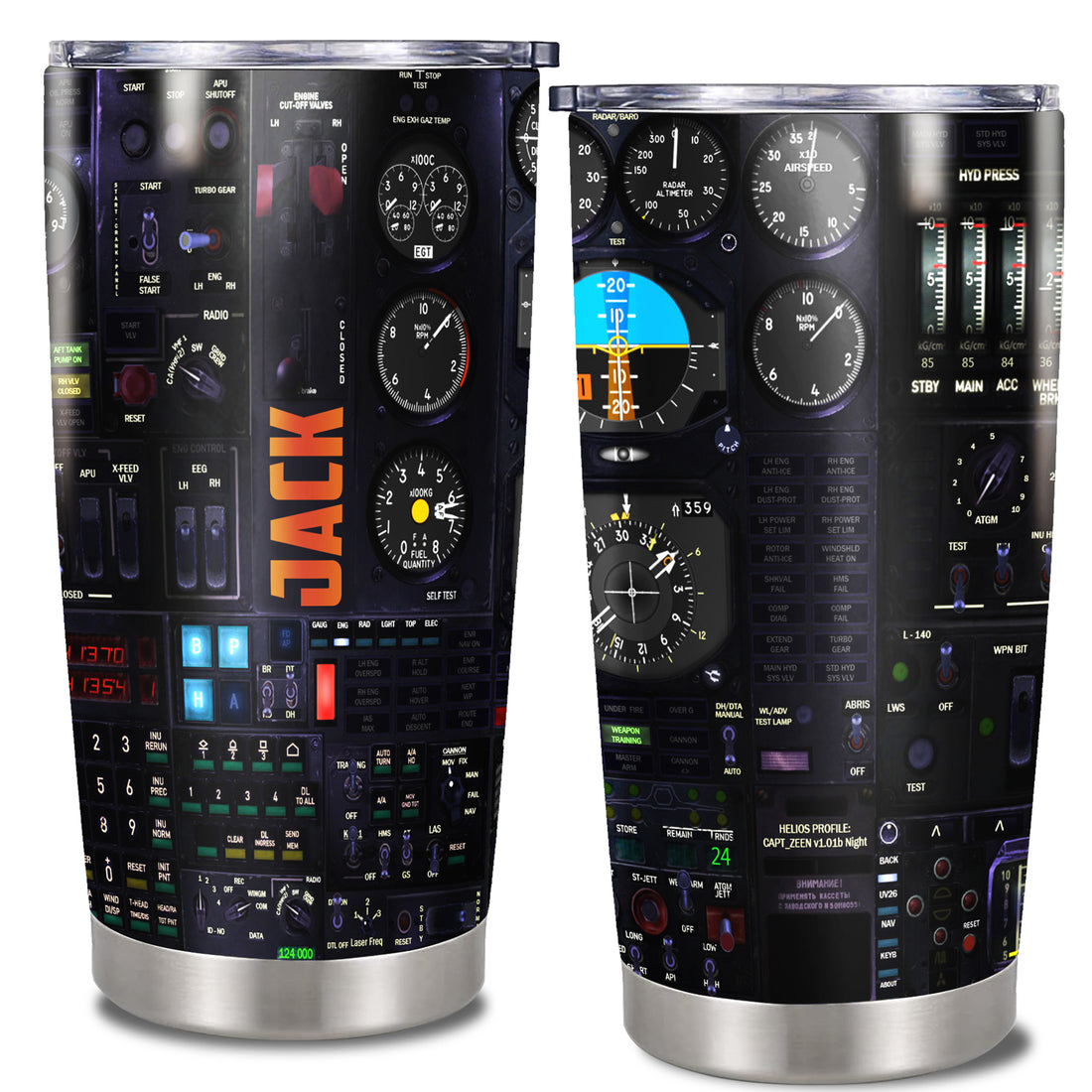Aviation Tumbler Personalized Pilot Flight Instrument Panel Indicator Aircraft Cups Mug Custom Name with Lid Stainless Steel 20 30 Oz Airplane Cool Gifts for Pilots Christmas