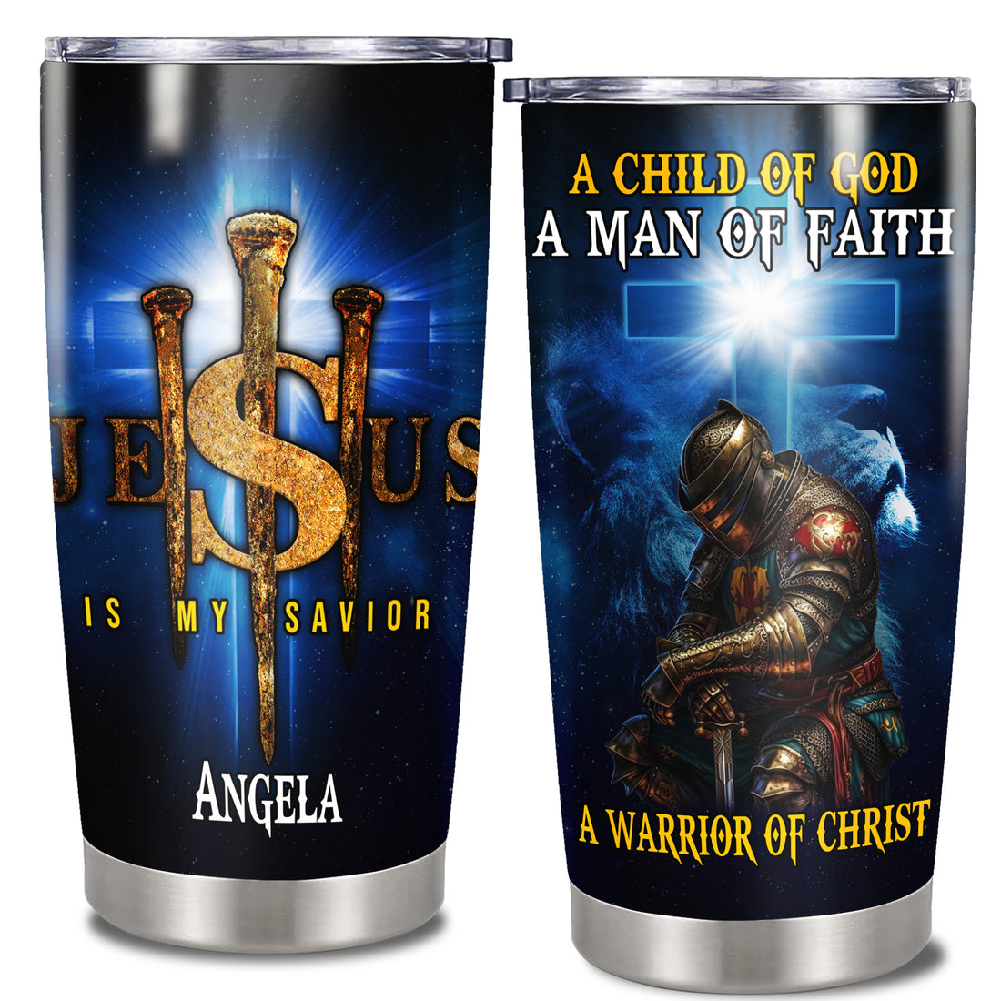 Personalized Christian Tumbler Customized Name Insulated Cup Stainless Steel 20oz 30oz A Child of God Man of Faith Warrior of Christ Gift For Men Dad Husband Grandpa Christmas