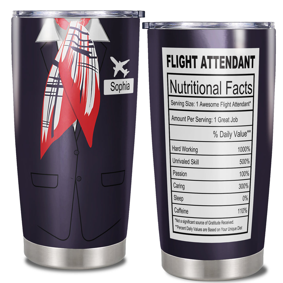 Personalized Flight Attendant Tumbler Custom Name Nutrition Facts Stainless Steel Travel Coffee Mug 20oz 30oz Insulated Cup With Lid Thermos Gift Things Birthday Christmas For Women Men