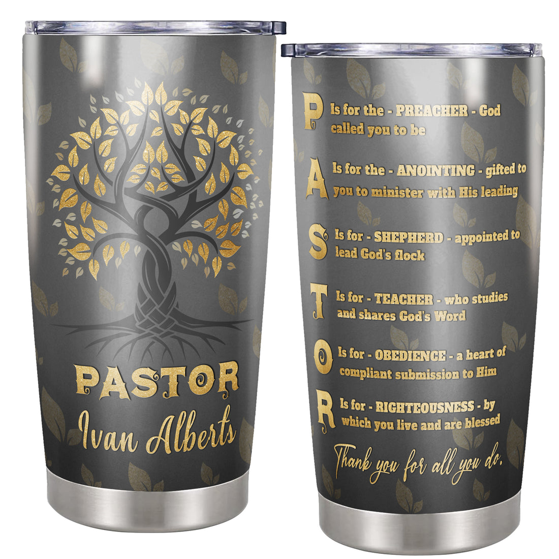 Pastor Gifts for Men Personalized Tumbler Custom Name Insulated Cup Travel Coffee Mug with Lid Stainless Steel 20 30 oz Religious Appreciation Gift for Pastors