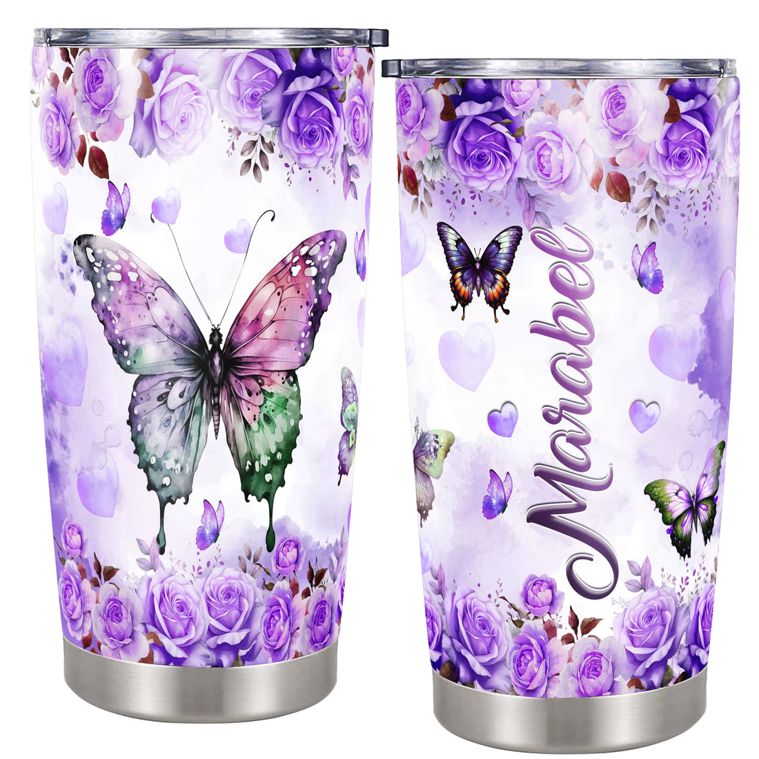 Personalized Butterfly Tumbler With Lid Custom Name Travel Mug Stainless Steel Insulated Cup 20oz 30oz For Girls Mom Women Butterflies Lovers Birthday Christmas