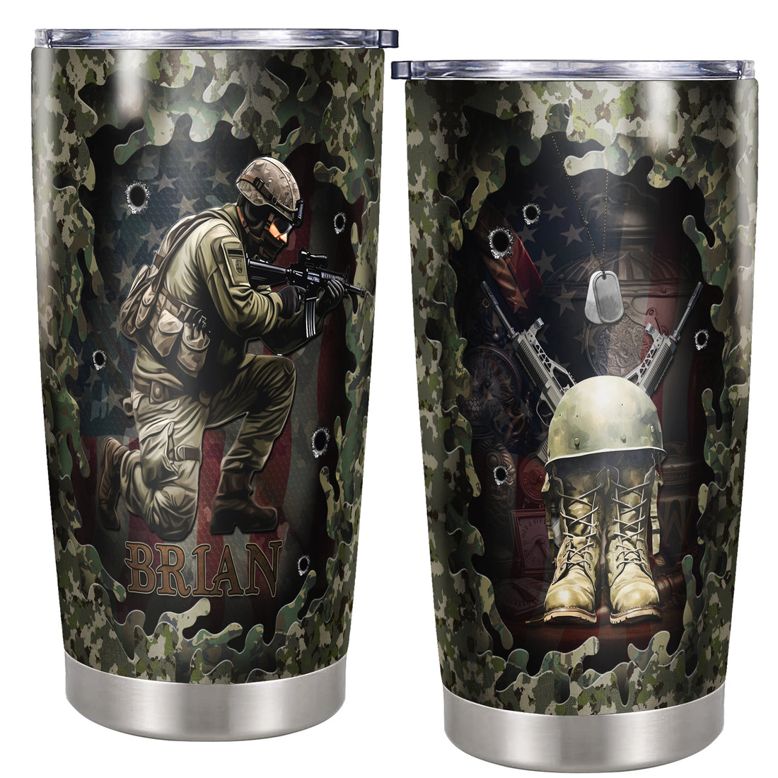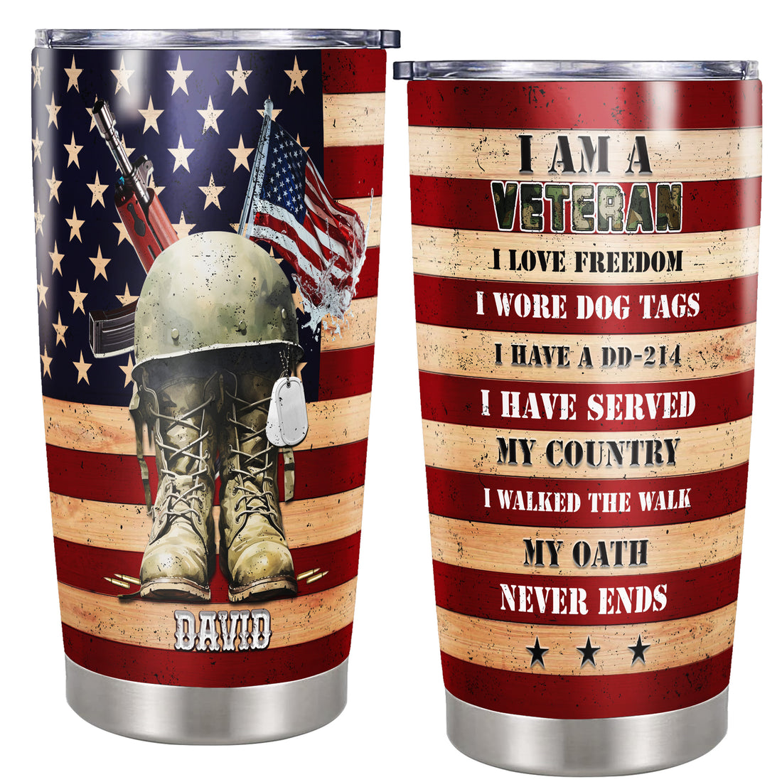 Veteran Gifts for Men, Personalized Army Veterans Tumbler Military Custom Name Mens Stainless Steel Vacuum Insulated Cup 20 OZ 30 OZ Birthday Unique Idea