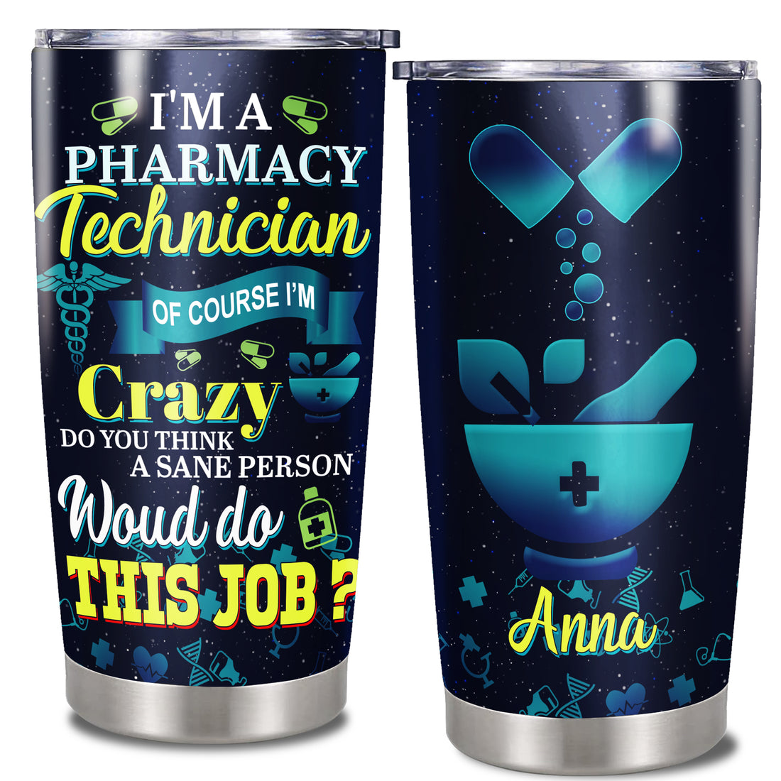 Personalized Pharmacy Technician Tumbler With Lid Funny Sayings Travel Mug Custom Name For Women Drug Dealer Nursing Health Care Provider Nurse Gifts Pharmacist Stainless Steel Tumblers