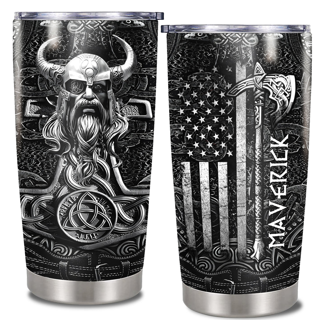 Personalized Viking Tumbler US Flag Style Customized Name Double Wall Vacuum Insulated Cup 20oz 30oz with Lid Unique Gift for Men Husband Son Dad Birthday Christmas