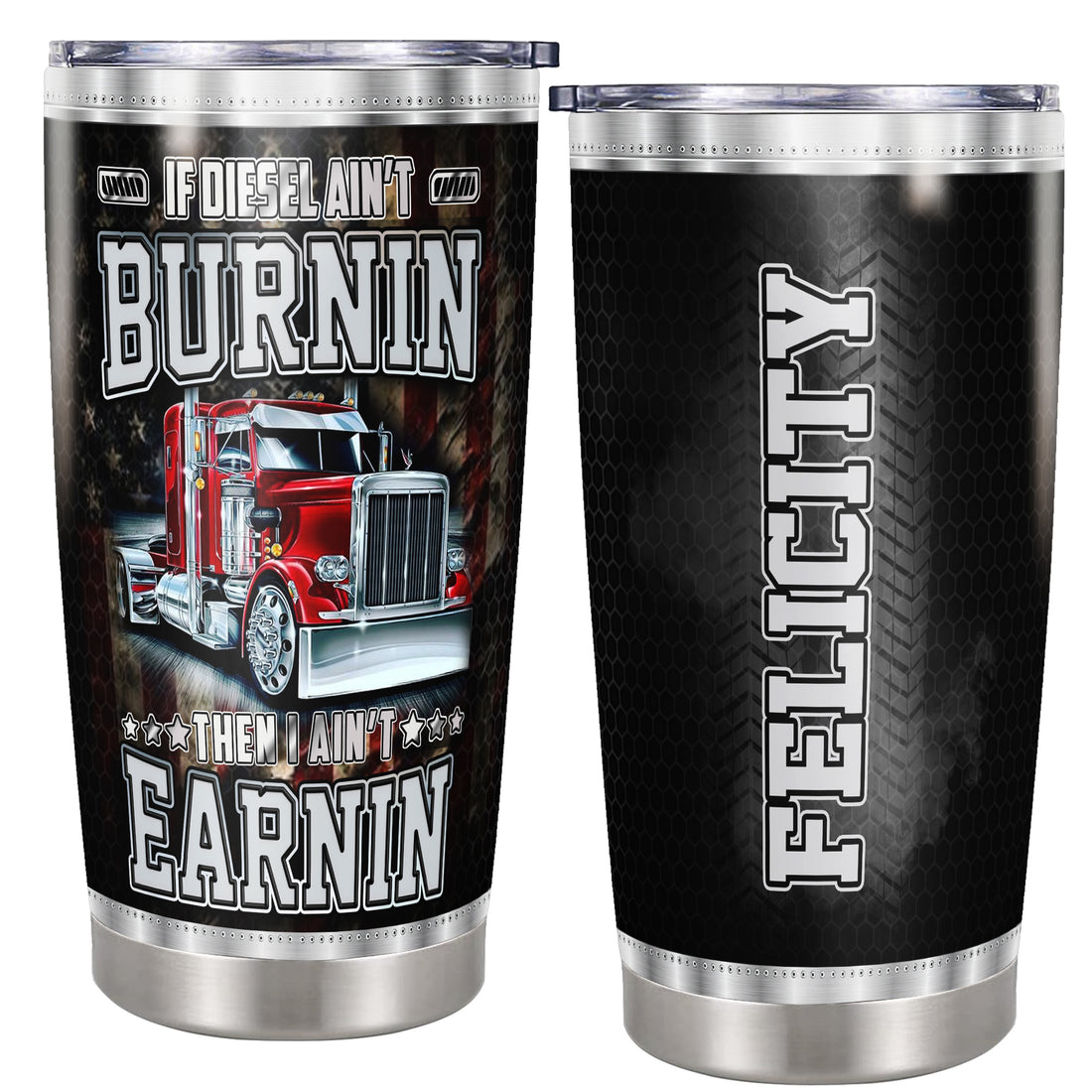Personalized Truck Driver Tumbler Custom Name Trucker Travel Coffee Mug Stainless Steel 20oz 30oz Insulated Cup for Truckers Drivers Husband Men Dad Christmas Birthday Fathers Day Trucks Gift