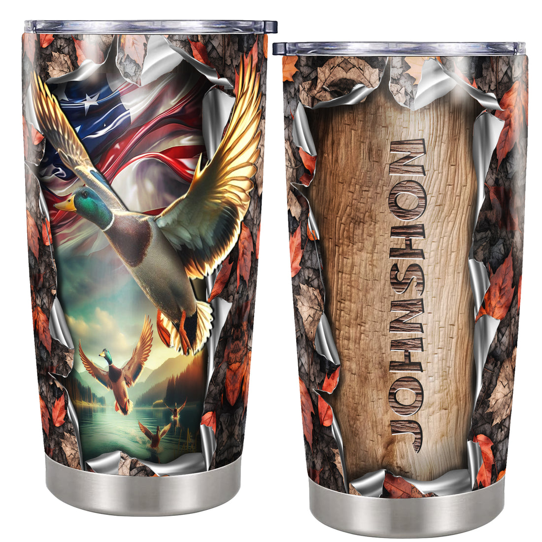 Personalized Mallard Duck Hunting Camo Tumbler Travel Coffee Mug Insulated Cup with Lid Stainless Steel 20 30 oz Gifts for Women Men Mothers Day Birthday