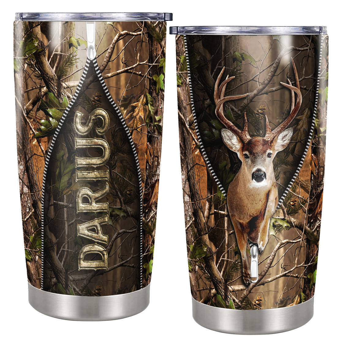 Personalized Hunter Deer Tumbler Customized Name Hunting Lovers Insulated Cups Travel Coffee Mug with Lid 20 30 Oz Gifts for Dad Man Woman Father's Day