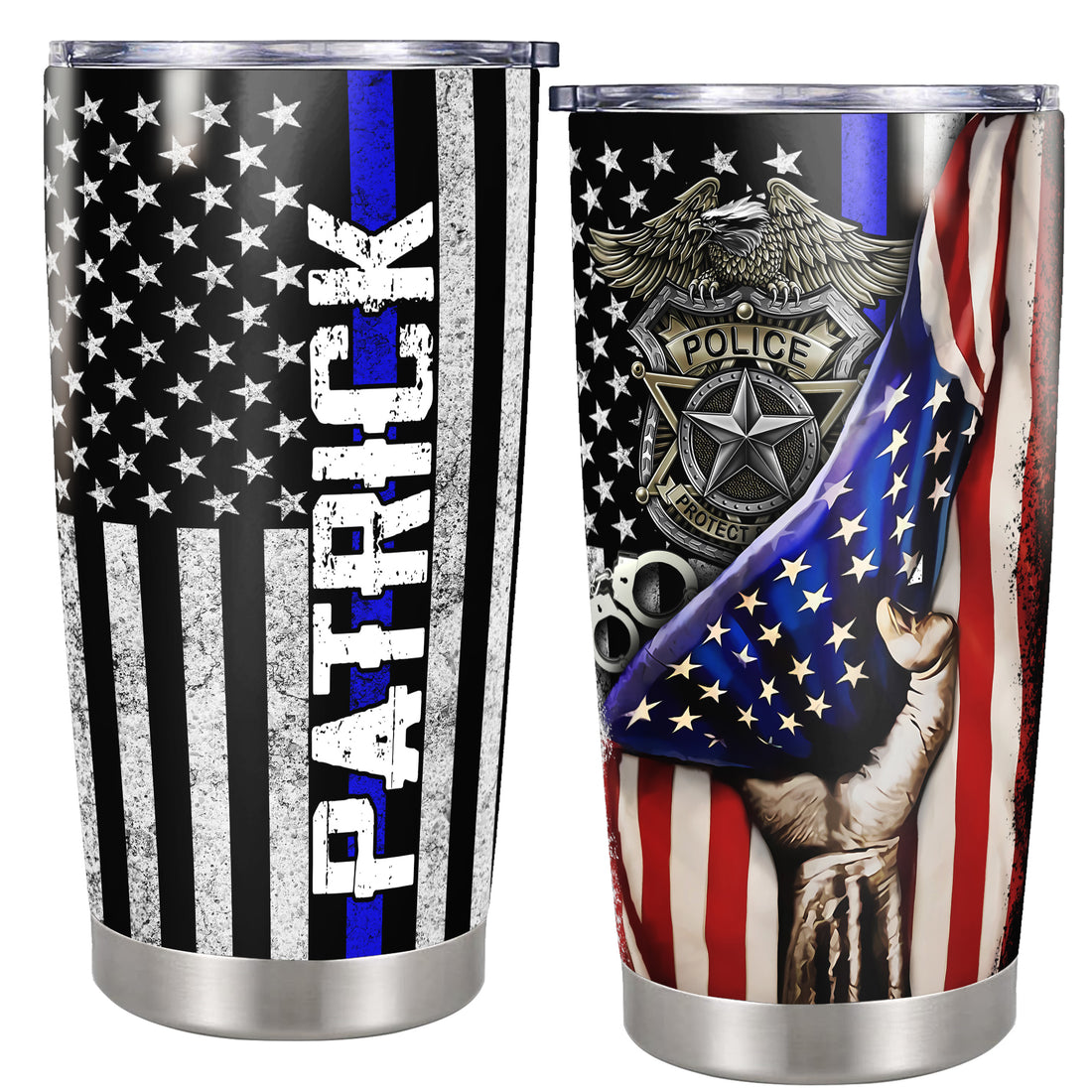 Personalized Police Tumbler Customized Name Insulated Cups Travel Coffee Mug with Lid 20 30 Oz Police Officers Week Gifts for Him Dad Men Academy Graduation Coworker Father's Day