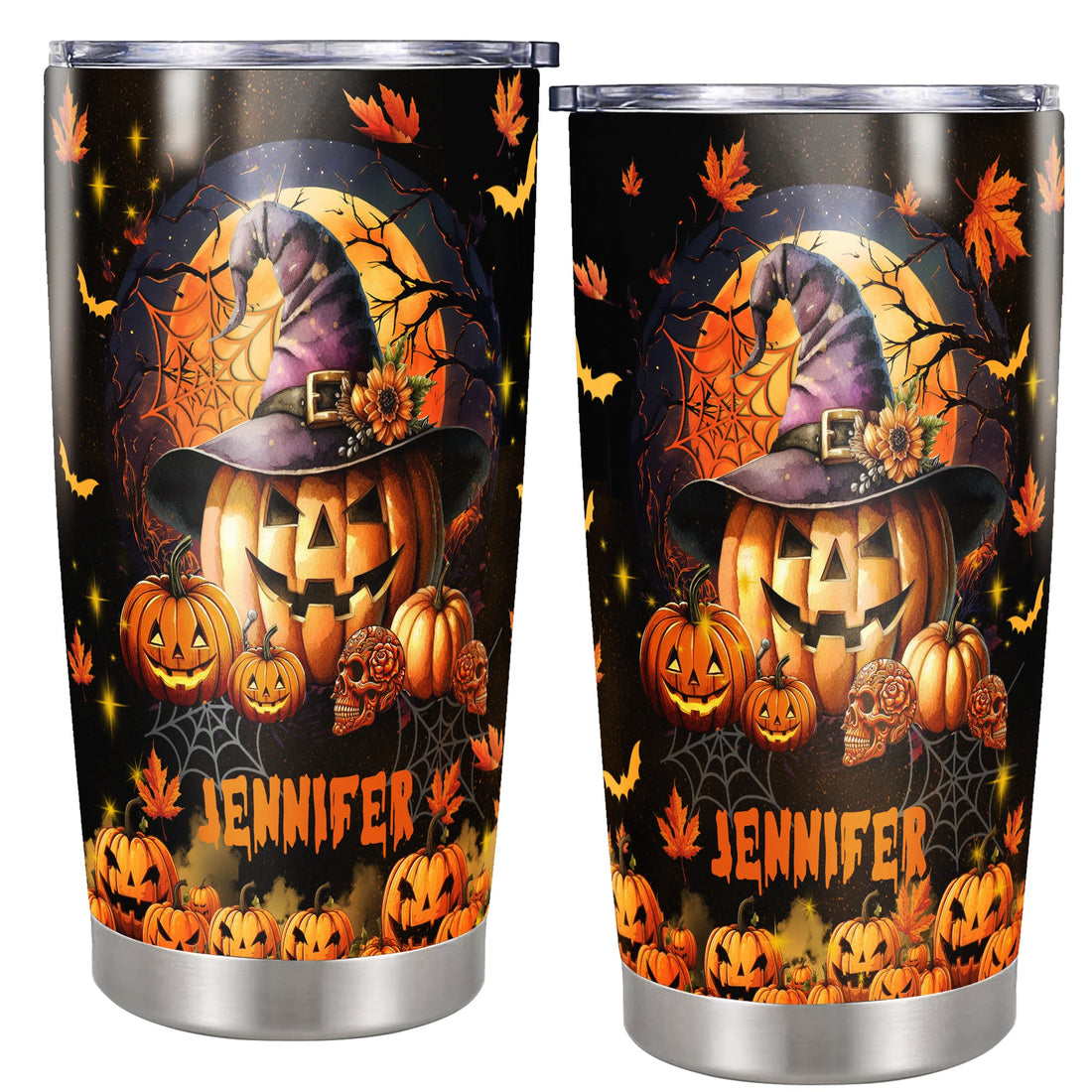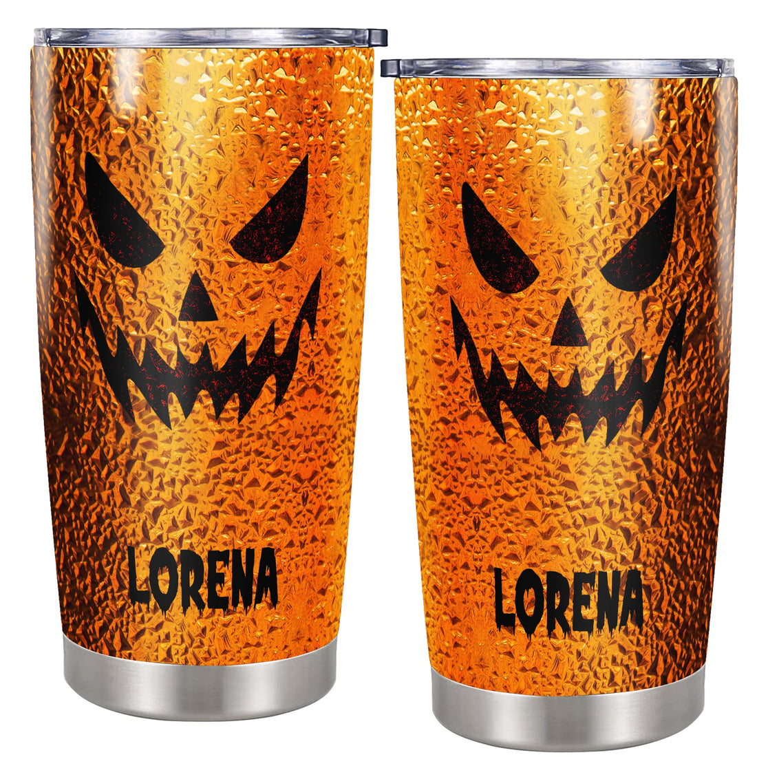 Personalized Pumpkin Halloween Tumbler Custom Name Travel Mug Coffee Insulated Cup with Lid Stainless Steel 20Oz 30Oz Decor Gifts for Men Women Kids