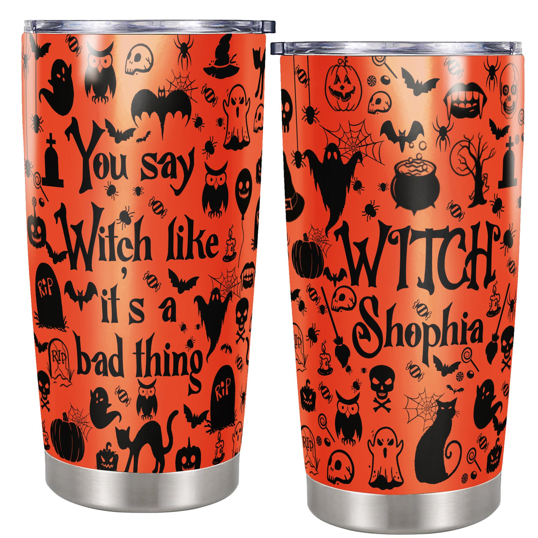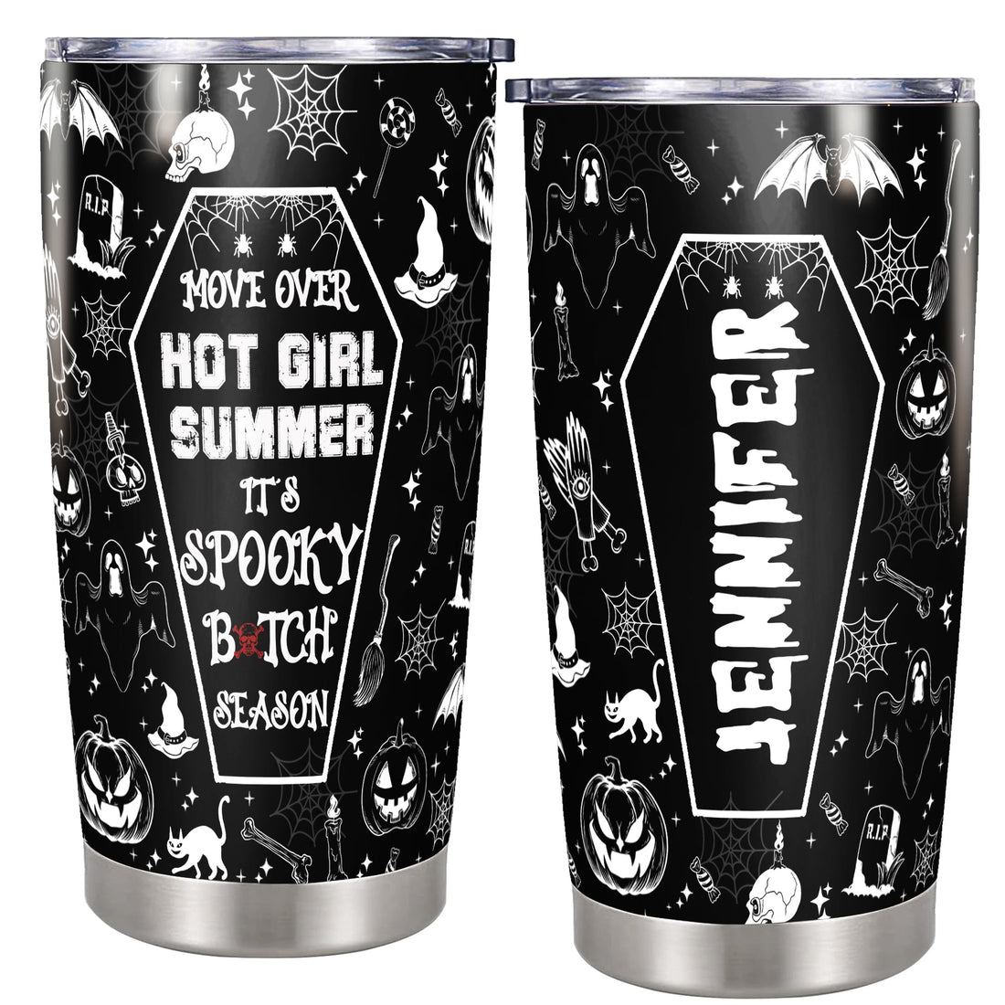 Personalized Halloween Tumbler Custom Name Witch Travel Mug Coffee Insulated Cup with Lid Stainless Steel 20Oz 30Oz Gifts for Women Girls Spooky Season