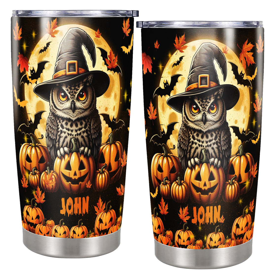 Personalized Halloween Owl Tumbler Custom Name Travel Mug Coffee Insulated Cup with Lid Stainless Steel 20Oz 30Oz Decor Gifts for Women Men Kids