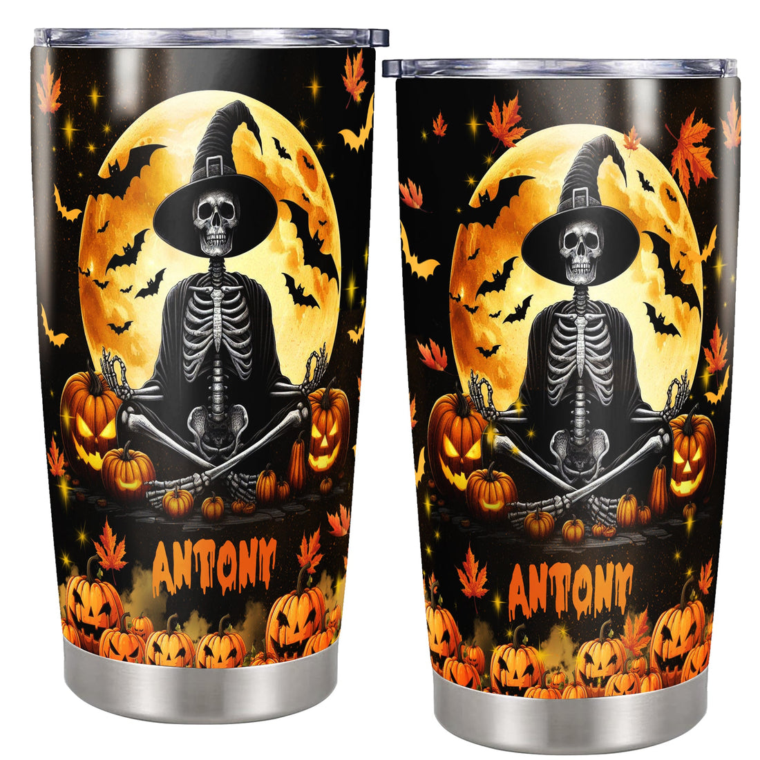 Personalized Skeleton Halloween Tumbler Custom Name Travel Mug Coffee Insulated Cup with Lid Stainless Steel 20Oz 30Oz Decor Gifts for Women Men Kids