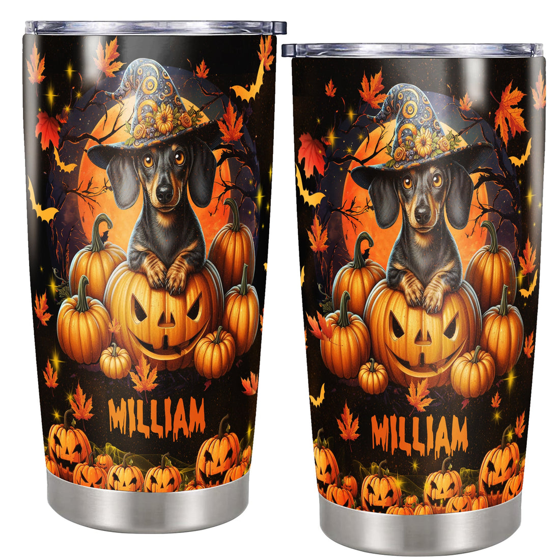 Personalized Halloween Dachshund Tumbler Custom Name Dog Travel Mug Coffee Insulated Cup with Lid Stainless Steel 20Oz 30Oz Decor Gifts for Women Men Kids